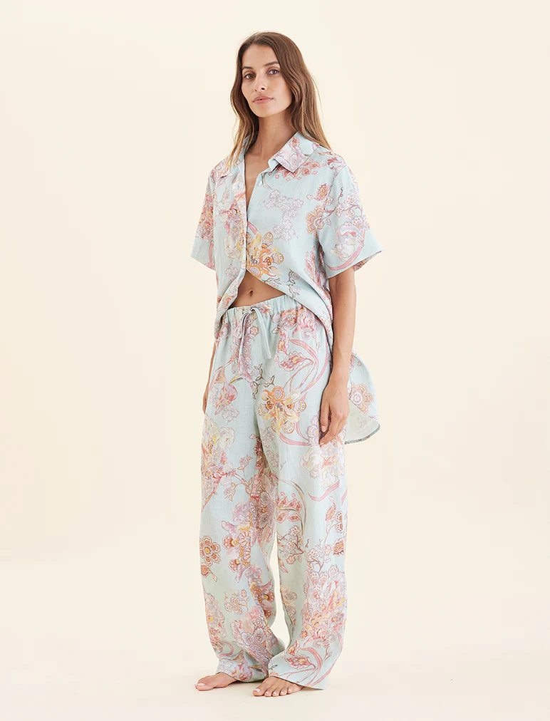 A feminine summer color palette with large scale florals all over. Made from soft, breathable linen fabric, perfect for summer lounging. Pair with the matching shirt or our best-selling Milla tanks for a super laid-back, effortless summer look.